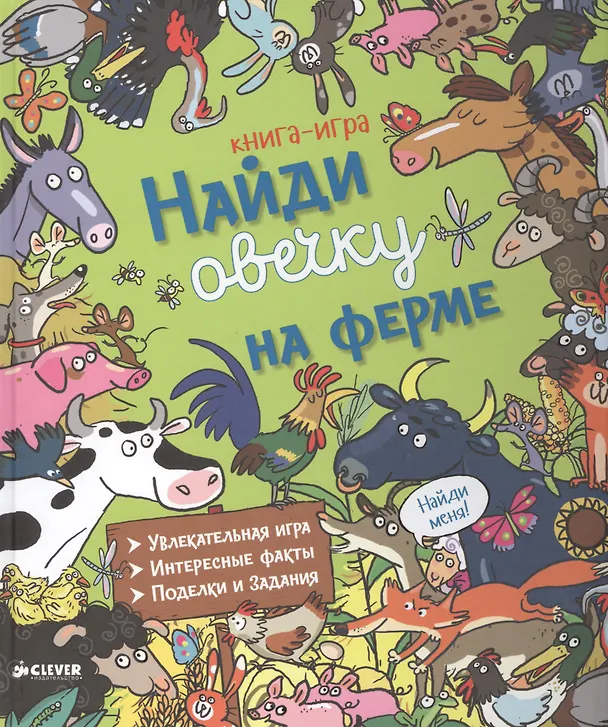.Прогуляйтесь по огороду, загляните в конюшню и коровник, пересчитайте цыплят и узнайте много интересных фактов о животных. А еш,ё на кажлом развороте прячется овечка. Сможете её отыскать?