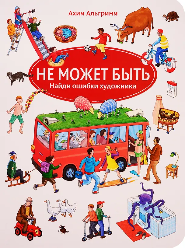 .Фантазия художника, придумавшего этот виммельбух, поистине не знает границ! На шести разворотах он умудрился "наделать" более 200 ошибок, которые и предстоит найти внимательному читателю. А чтобы каждый смог проверить свою наблюдательность и убедиться, что ничего не упустил, на задней стороне обложки есть ответы, где красными точками помеч