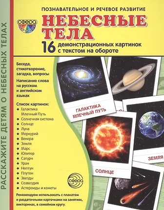 Небесные тела. 16 демонстрационных картинок с текстом на обороте