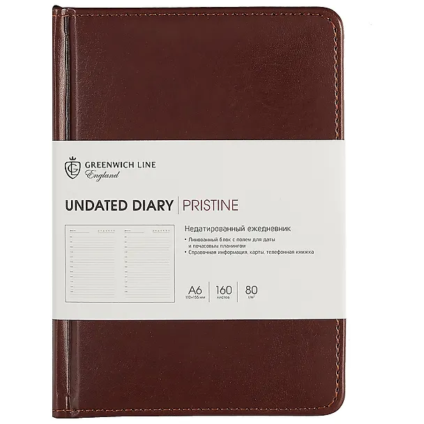 Недатированный ежедневник «Pristine», коричневый, 160 листов, А6