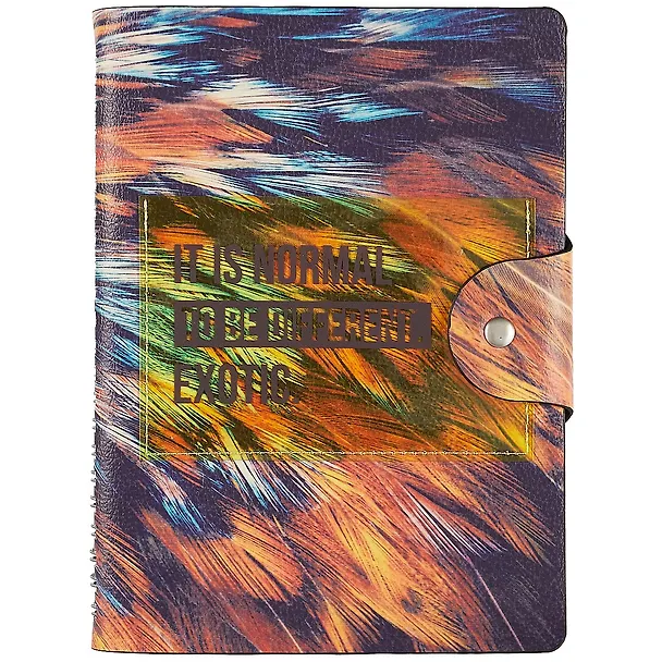 Обложка - мягкая, полускрытая спираль, гладкая искусcтвенная кожа с печатью. Блок недатированный, 192 стр, прямые уголки, бумага: цвет - 100 % белизны, 70 г/м2, печать 2+2. Особенности: пластиковый карман с шелкографией.
