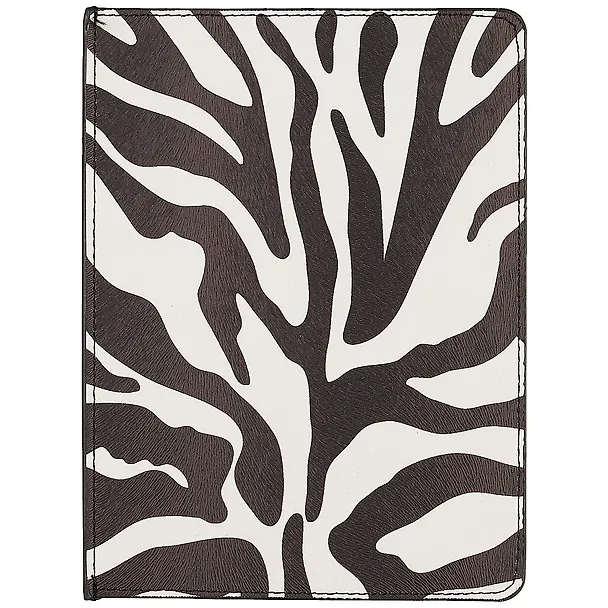 Обложка - съемная, искусственная кожа с принтом зебры, прострочка по периметру обложки.