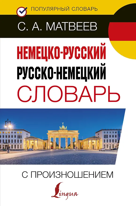 Сергей Матвеев, известный автор словарей и пособий по иностранным языкам, предлагает немецко-русский и русско-немецкий словарь. В каждой части содержится по 4000 самых употребительных слов. Все слова снабжены транскрипцией русскими буквами, причем транскрипция немецких слов дается и в русско-немецкой части. Указан род немецкого существительного (m - мужской род, n - средний род, f - женский род) и множественное число.