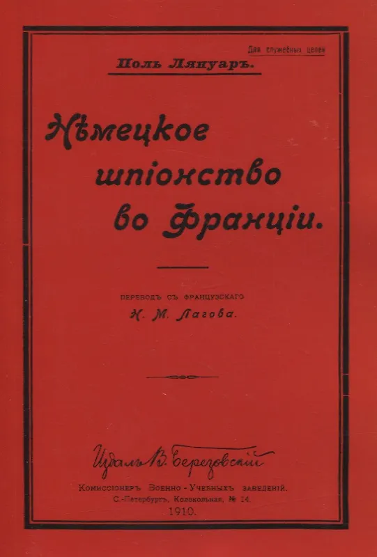 Книга Лянуара, помимо множества побочных интереснейших деталей политической жизни Европы за последнее полустолетие, открывает русскому читателю положительно целый неизвестный ему мир германского шпионства. Причем автор не ограничивается сугубо Франции, он настолько углубил и расширил исследование вопроса, что читателю представляется совершенно отчетливая картина всей системы германского шпионства.
