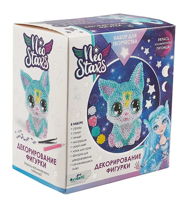 Вашему вниманию предлагается набор для творчества "Neo Stars. Декорирование фигурки. Котенок Твинкли". В наборе:- стразы, - стилус, - пинцет,- инструкция,- сухой клей, - лоток для страз,- фигурка для декорирования,- самоклеящиеся глаза.
