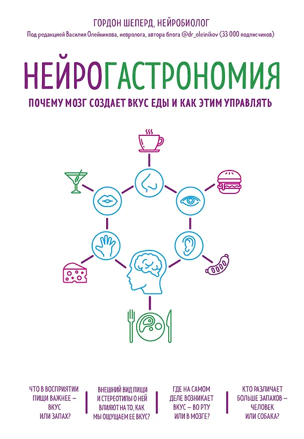 Ключевая идея этой книги в том, что у людей очень развито обоняние, и вдыхание запаха пищи или напитка отвечает за вкус больше, чем ее разжевывание или глотание. Эта система восприятия вкуса человеческим мозгом называется нейрогастрономия.