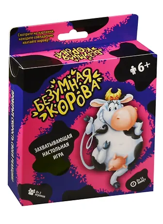 .Находите совпадения и быстрей хватайте фигурку Безумной Коровы! Кто не успел, тот забирает карточки. А тот, кто избавится от всех карт раньше других, победил!