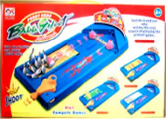 Теперь вы сможете сыграть в свой настольный боулинг. Установите фигурку человечка, расставьте кегли и можете начинать игру. Благодаря специальному механизму фигурка человека сможет сама катать шары, взмахивая рукой. Вам предстоит только установить фигурку в нужном месте и нажать на пусковую кнопку. Игровое поле снабжено кнопкой для получения шаров и специальным механизмом для расстановки кеглей. Проверьте свою ловкость и меткость с этим замечательным боулингом.