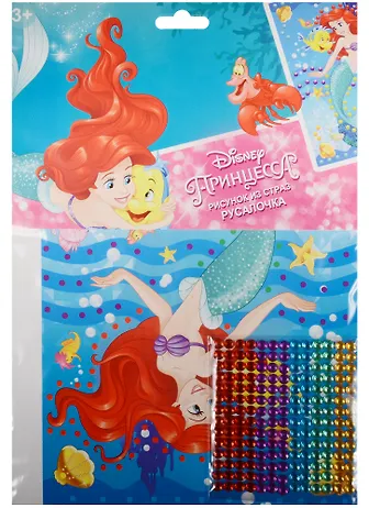Красивый рисунок русалочки Ариэль со своим другом рыбкой Флаундером, дополняется сказочным фоном морского дна. Поэтому рисунок из страз «Русалочка» по лицензии «Уолт Дисней» не оставит равнодушным сердце ребенка от 3 лет.
