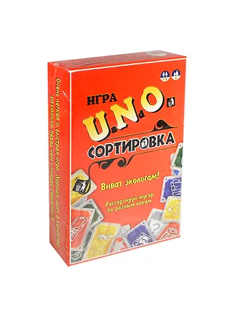 Настольная игра "UNO Сортировка" - очень легкая и быстрая игра. Смысл игры: рассортируй мусор по разным бакам. 108 карт.