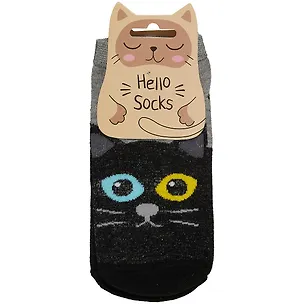 Цена немного кусается. У меня высокий подьем, некомфортно на ноге из-за довольно тугой резинки. Если носок вывернуть наизнанку, там мы увидим множество торчащих ниток, особенно в районе мордочки котика.