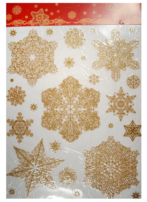 Симпатичные новогодние наклейки в виде снежинок разных форм и размеров. Снежинки золотистого цвета. Легко отделяются от подложки и без проблем крепятся к поверхности. Можно декорировать окна, зеркала, плитку. Смотрятся аккуратно.. Создают новогоднюю атмосферу. Снимаются без усилий, не портят поверхность и не оставляют следов. При аккуратном использовании можно переклеивать повторно.
