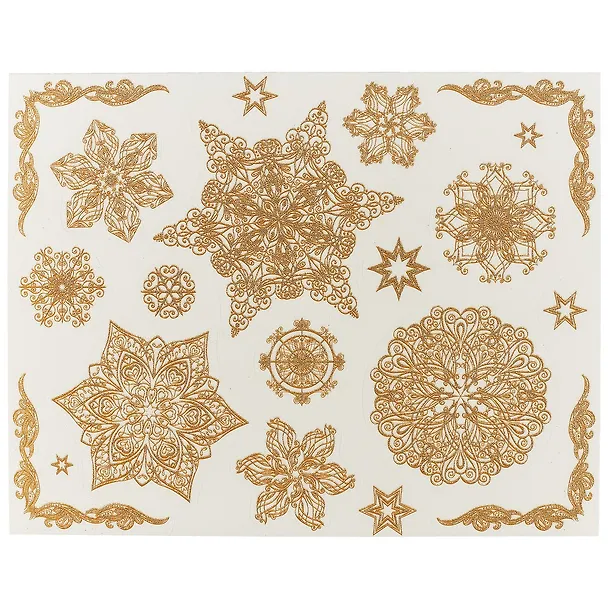 Наклейки с золотистыми снежинками добавят блеска вашему дому. Каждую снежинку можно приклеить отдельно.