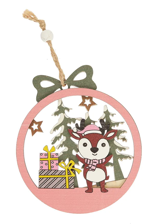 Отличное новогоднее подвесное украшение в виде шара с олененком, елками и подарками. Украшение деревянное, очень аккуратно выпилено, несмотря на обилие мелких деталей. Гладкое, нет заноз и заусенец. Качественно раскрашено в нежных пастельных тонах. Надежный подвес. Отлично будет смотреться на елке или в новогодней композиции. Подойдет в качестве небольшого сувенира для родных и друзей.