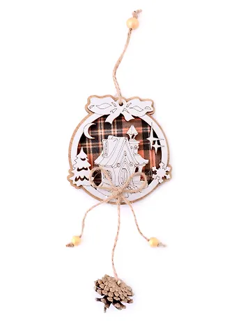 Новогоднее подвесное украшение с шишкой Домик (серебро) (дерево) (10х10)