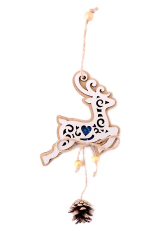 Новогоднее подвесное украшение с шишкой Олень (серебро) (дерево) (12х10)