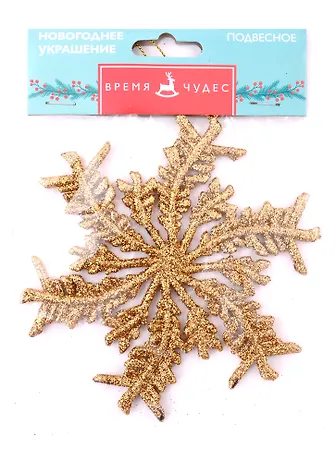 Красивая, яркая новогодняя елочная игрушка Снежинка. Я бы даже назвала ее не Снежинка, а Звездочка, так как она очень красивого золотого цвета, вся блестит, переливается на свету. На елке смотрится хорошо и гармонично. Также можно украсить этой новогодней игрушкой что-то в интерьере - дома или на работе.