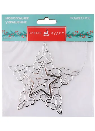 299 ₽ 249 ₽Новогоднее подвесное украшение Снежинка перламутровая (пластик) (ПВХ бокс) (12х12) (12-09229-2-N21) Купить