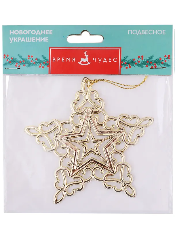 Новогоднее подвесное украшение Звёздная снежинка с золотом (полипропилен) (11x11) (89071)