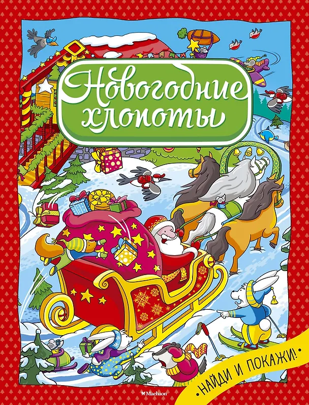 Как мне нравится эта книга! Она очень симпатичная, по-настоящему новогодняя, она задаёт новогоднее настроение деткам. Обложка глянцевая мягкая, книга формата А4, внутри замечательные цветные новогодние иллюстрации, на которых изображено большое количество персонажей, предметов и даны задания, что и в каком количестве нужно найти на этой страничке. Иллюстрации добрые, с Дедом Морозом и его помощниками, деток на катке, например, и т.п. Задания интересные, дети в восторге. И цена более чем бюджетная.