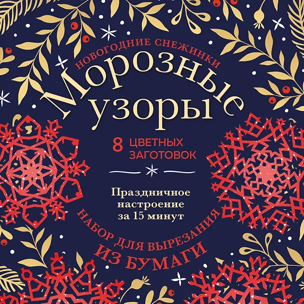 Новогодние снежинки «Морозные узоры» (200х200 мм, набор для вырезания из бумаги, 16 стр., в европодвесе)