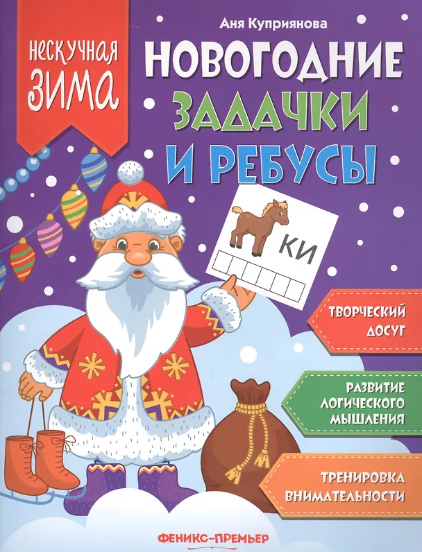 .В серии "Нескучная зима" собраны все творческие занятия, которые будут интересны и полезны детям: поделки, головоломки, ребусы, классические раскраски и раскраски по буквам, цифрам и точкам.