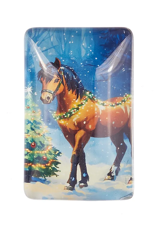 Новогодний магнит «Лошадь и ёлка» из стекла — небольшой, но очень настроенческий акцент для дома или офиса. Яркий рисунок с лошадью и пушистой ёлкой создаёт ощущение праздника каждый раз, когда вы открываете холодильник или заглядываете на магнитную доску.