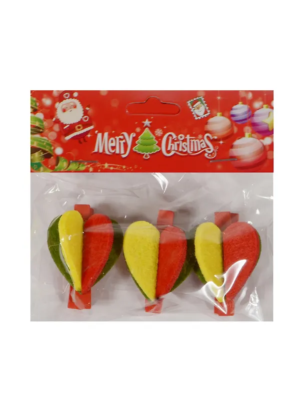 Новогодний Набор из 3-х прищепок 3D-сердце в пакете с хедером (11069725) (12х10см)