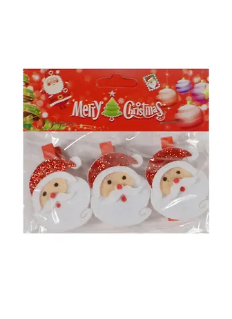 Новогодний Набор из 3-х прищепок Дед мороз блестящий в пак. с хедер. (11069719) (12х10см)
