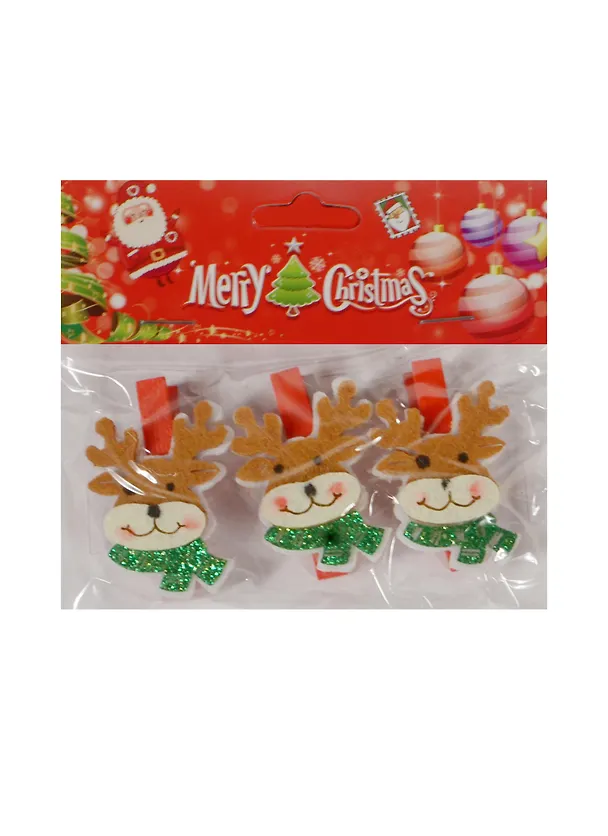 Новогодний Набор из 3-х прищепок Олень блестящ. в пак. с хедер. (11069721) (12х10см)