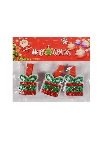 Новогодний Набор из 3-х прищепок Подарочн. коробки кр.-зел. в пак. с хедер. (11069711) (12х10с
