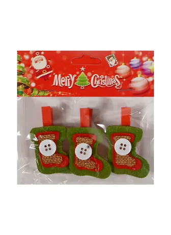 Новогодний Набор из 3-х прищепок Сапоги с пуговкой в пакете с хедер. (11069706) (12х10см)