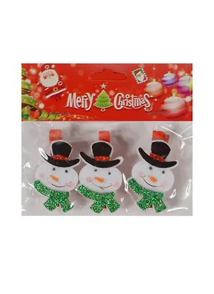 Новогодний Набор из 3-х прищепок Снеговик блестящ. в пак. с хедер. (11069720) (12х10см)