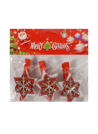 Новогодний Набор из 3-х прищепок Снежинки с серебром в пак. с хедер. (11069701) (12х10см)