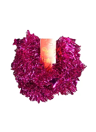 Отличный вариант в соотношении цена/качество. Мишура насыщенного розового цвета ярко переливается в свете огней, также из неё торчат очаровательные звёздочки. Длина стандартная. Я её покупала в качестве замены обыденному наполнитель для коробок в новогодний подарок, вышло круто, свою функцию отлично выполнила