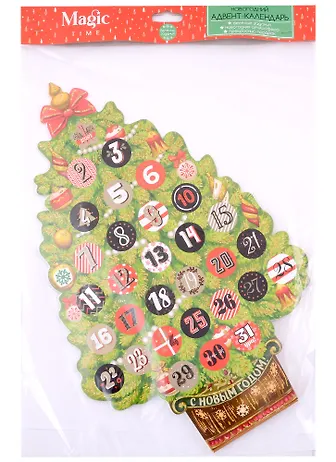 Яркая ёлочка, интересный надписи (задания, пожелания) под каждой наклеечкой. Наклейки легко отклеиваются, лепила их с другой стороны ёлки. После прохождения всех заданий адвент-календарь использовала, как декор на стену. Елку также можно поставить на стол.