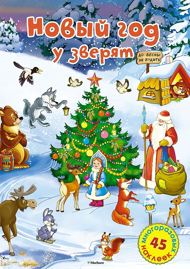 Представьте, что вы в Новый год попали в сказочный лес. На опушке стоит пышная, украшенная игрушками ель, а вокруг неё собрались все лесные жители. Кого здесь только нет! Волк с фонариком прибежал из тёмной чащи, мышки покинули свои уютные зимние спаленки, гордый олень спешит по сугробам, белки с зайчиками носятся наперегонки на коньках. Все торопятся к Дедушке Морозу за подарками!