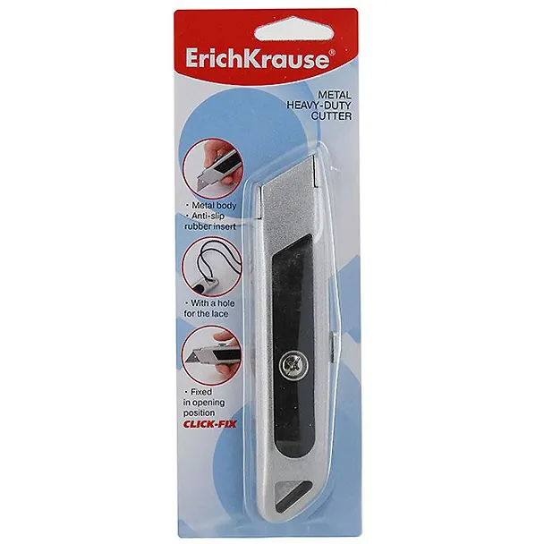 Нож канцелярский 19мм автофикс., 2 усилен. запaсных лезвия, метал., блистер, ERICH KRAUSE