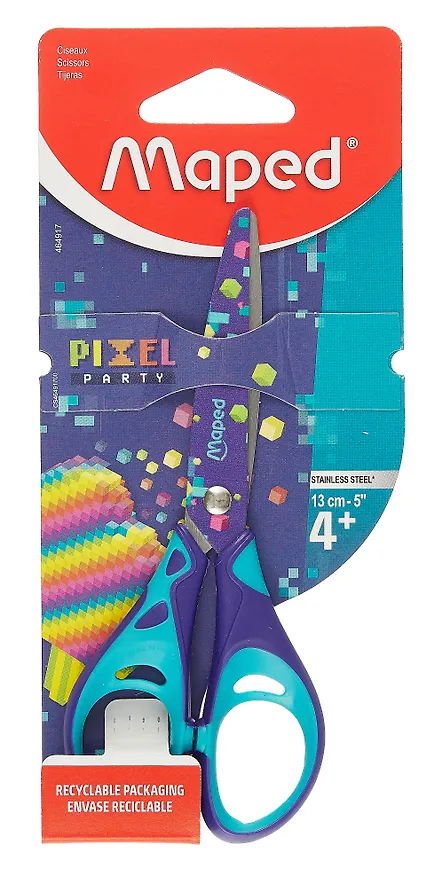 Ножницы 130мм детские "PIXEL PARTY" декорир.лезвия, нерж.сталь, закругл.концы, прорезин.кольца ручек, симметричные, карт.подвес, Maped