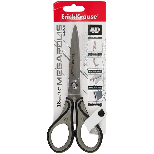Ножницы 180мм офисные "Megapolis", черные, блистер, ErichKrause