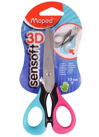 SENSOFT Ножницы 13 см, эргономичные, концепция 3D - специально для детской руки, с гибкими двухцветными ручками, симметричные