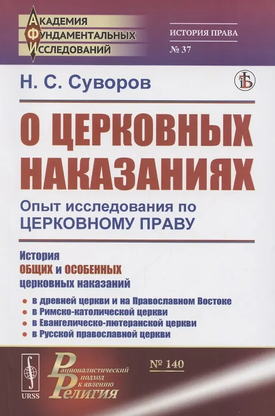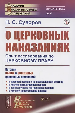 Вниманию читателей предлагается книга русского историка и правоведа Н.С.Суворова (1848--1909), посвященная исследованию истории развития церковно-правового института, проявляющегося в виде церковных наказаний, в различных христианских церквях --- древневосточной, римско-католической, евангелическо-лютеранской и русской православной. Книга состоит из двух разделов, в первом из которых освещаются общие, а во втором --- особенные церковные наказания. Во введении представлено обоснование наказующей власти церкви, рассматриваются сущность, цели, а также общие черты системы церковных наказаний.