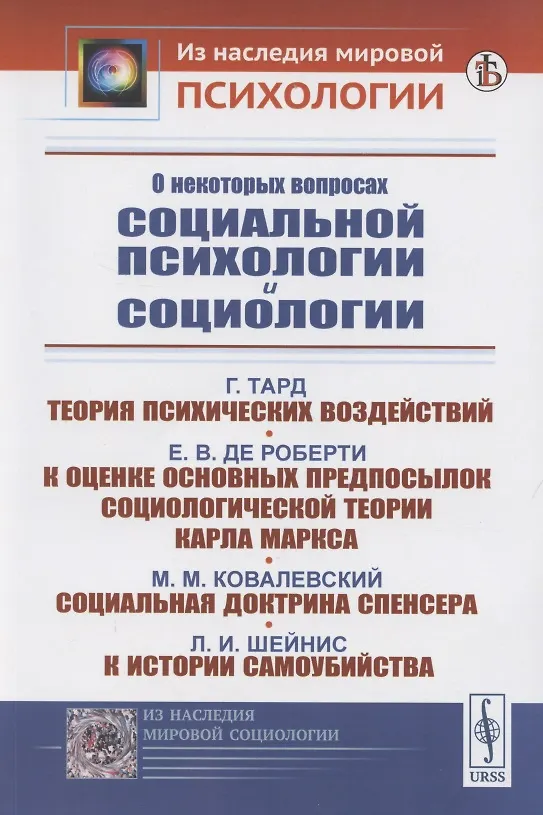 Вниманию читателей предлагается книга, в которую включены лекции по социологии, прочитанные профессорами Русской Высшей школы общественных наук в Париже --- учебного заведения, в котором в начале XX века учились многие российские политики. В книге содержатся: лекция французского социолога и криминалиста Г.Тарда, посвященная защите его теории психических воздействий как составляющих основу всех общественных явлений; исследование социологом Е.В. де Роберти учения Карла Маркса, названного автором экономическим материализмом; изложение учения крупнейшего представителя социологической мысли Герберта Спенсера, сделанное М.М.Ковалевским; очерк врача и журналиста Л.И.Шейниса по вопросу о самоубийств