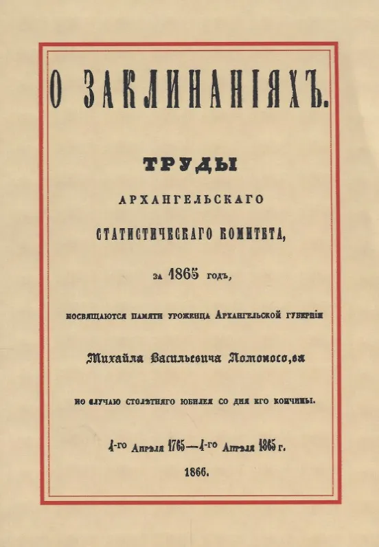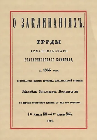 Тираж 30 экземпляров. Репринт с издания. Архангельск 1866. Оттиск из Трудов Архангельского Статистического комитета за 1865 г. Содержание: Молитвы: 1) От нечистого духа; 2) От трясавицы; 3) От грыжи; 4) Молитва пастуху скот пасти; 5) О зайцах; 6) Подход к властям; 7) Дополнение - от зубной болезни, от всякой болезни, подход к властям; 8) Малоизвестные слова в молитвах. Заговоры, собранные в Сомомбале.