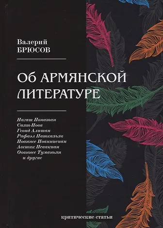 Валерий Яковлевич Брюсов (1873-1924) - русский поэт Серебряного века, писатель, публицист, один из основоположников русского символизма. "Об армянской литературе" - прекрасный сборник критических статей и рецензий Брюсова, посвященных литературе Армении и творчеству известных поэтов, среди которых: Нагаш Ионатан, Саят-Нова, Геонд Алишан, Рафаэл Паткаяьяв, Иоаннес Иоаннисиан, Аветик Исаакиан, Ованнес Туманьян и многие другие. Эта книга не оставит равнодушными читателей, интересующихся историей армянской литературы прошлого века.