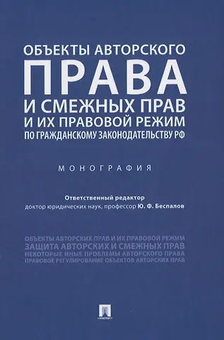 В данной монографии представлены научные исследования, касающиеся создания, признания и использования объектов авторского права и смежных прав и их правового режима; понятие и виды объектов авторских прав; понятие и виды объектов смежных прав; правовой режим; общее и различное; недостатки действующей ч. IV ГК РФ; проблемы правоприменительной практики; ценность объектов авторского права и смежных прав для человеческого развития; правовое регулирование объектов авторских прав в некоторых странах Европы и Китая и др.
