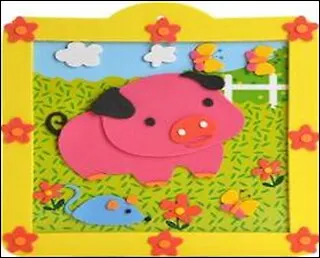 Объемная аппликация из мягкого пластика с рамкой Поросенок (YH0869) (упаковка)