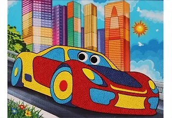 Мелкая крошка, которая приклеивается не полностью, вся картина какая-то не четкая, готовьтесь что полом мелкие крошки будут везде. Также готовую работу лучше убрать в файлик, у нас висела на стене, ребенок подбегал и царапал, в итоге выбросили, крошки на полу, поделка облезла. На раз занять ребенка число для процесса нормально, лучше детям старше 3 лет.
