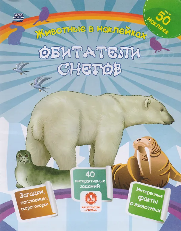 Блок "Обитатели снегов" содержит лист с яркими наклейками животных, обитающих в суровых условиях севера, тундры на суше, в воде, в воздухе, - моржа, тюленя, морского котика, белого медведя, песца, оленя, полярной совы, тупика, касатки, яка, горного козла, рыбы-меча, кайры, лемминга. Каждая наклейка представляет собой фотоизображение животного в дикой природе. В процессе работы с набором у ребенка совершенствуются тонкие движения, развивается логика и внимание, речь, память, творческое воображение, изобразительные, познавательные и коммуникативные умения, необходимые детям для достижения образовательных результатов в соответствии с требованиями ФГОС. Кроме того, ребенок может оценить выполнен