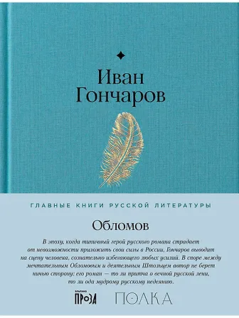 собираю классическую русскую литературу именно в этом издании, потому что: а) очень качественное, б) на долгие годы, в) оно просто красивое :) на полке смотрится просто превосходно, а еще отлично подойдет для подарка. Произведение Ивана Гончарова "Обломов" можно перечитывать ежегодно. Оно наполненное и неисчерпаемое. А в таком превосходном обличии читать книги просто восторг.